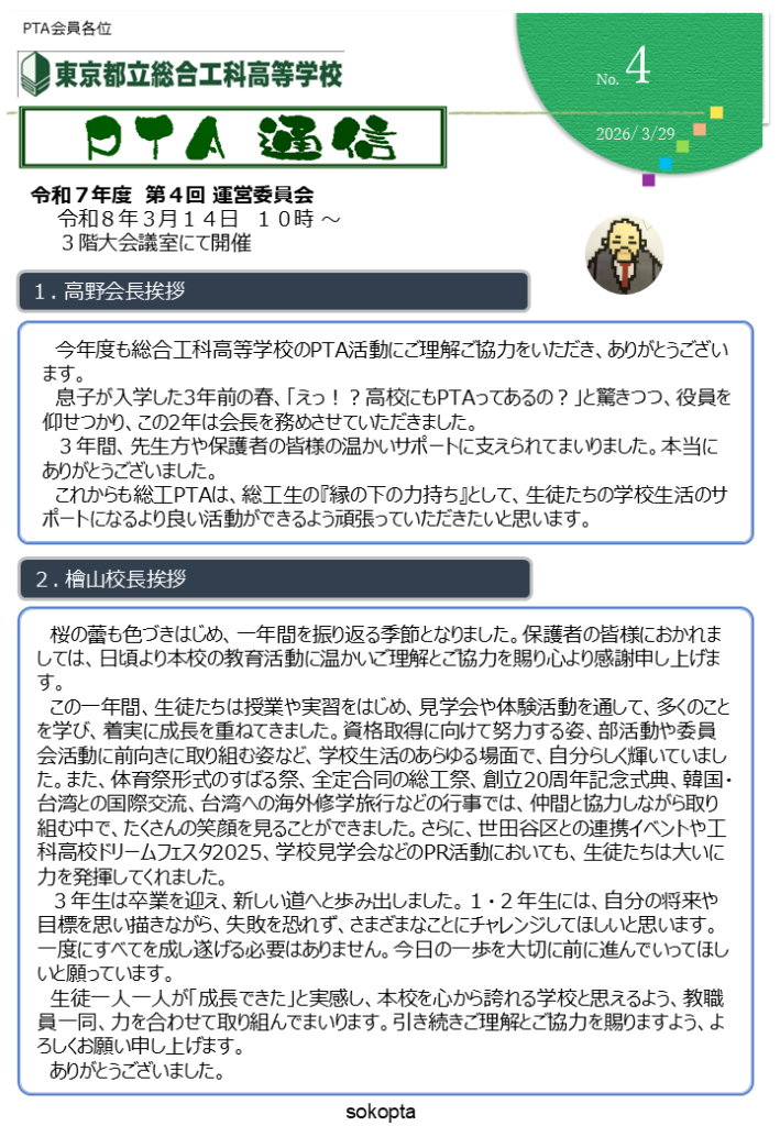 令和7年度 第4回PTA通信
